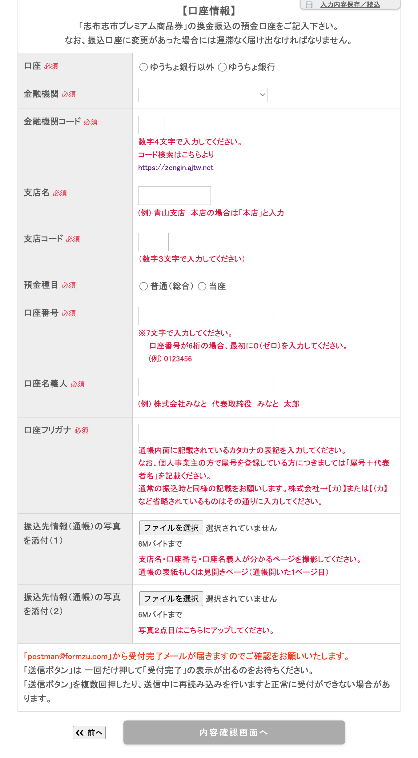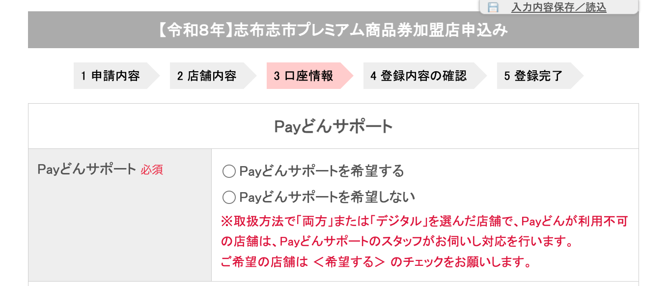 Payどんサポート・お振込み先の口座情報の入力をお願いします。