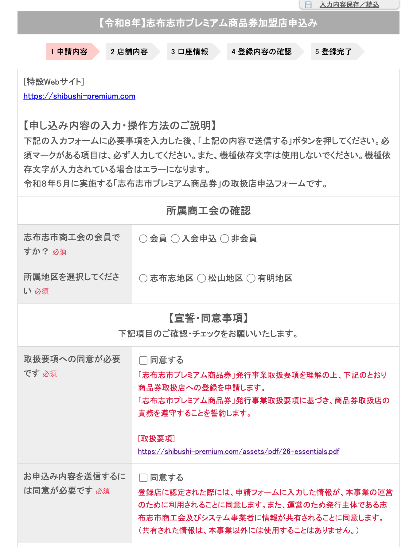 取扱店登録申請の入力をお願いします。