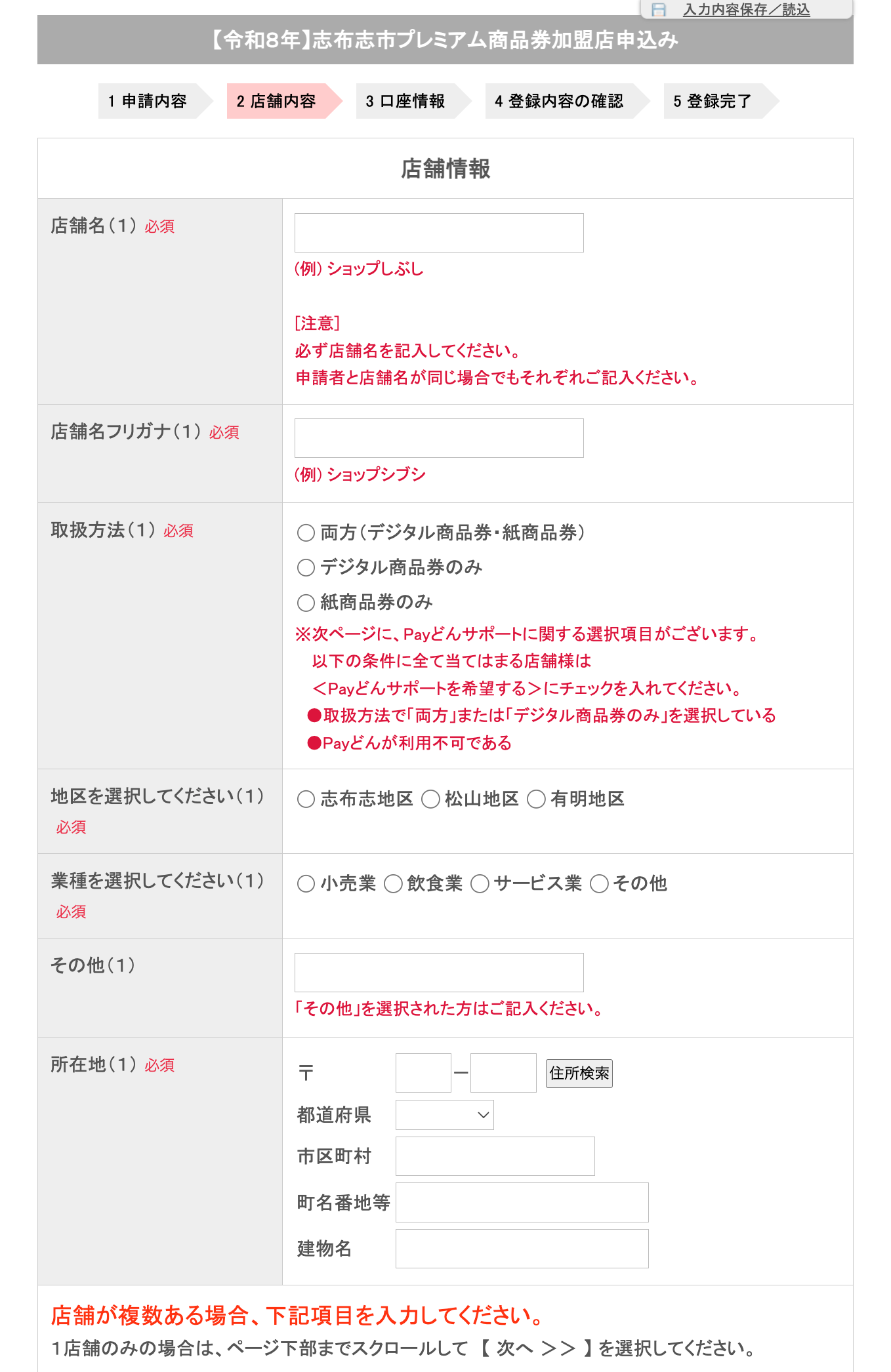 店舗情報の入力をお願いします。